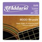 D’Addario 【クリスマスセール】 80/20 Bronze Round Wound Acoustic Guitar Strings EJ13 (Custom Light/11-52)