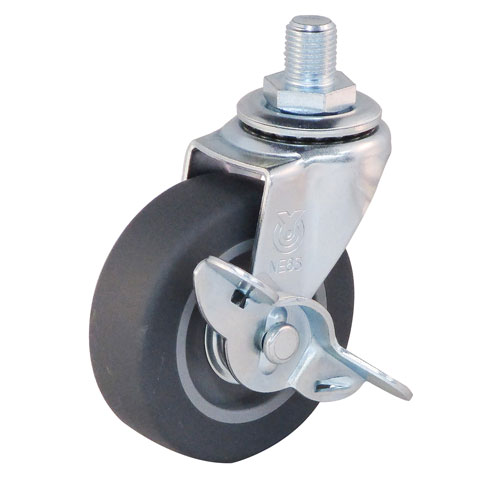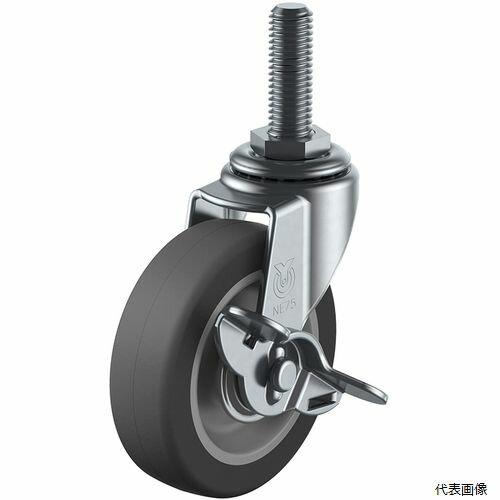 【ユーエイキャスター YUEI】ユーエイキャスター LT-65ELS-M12-14 ねじ込みキャスター自在車ストッパー付 65径エラストマー車輪