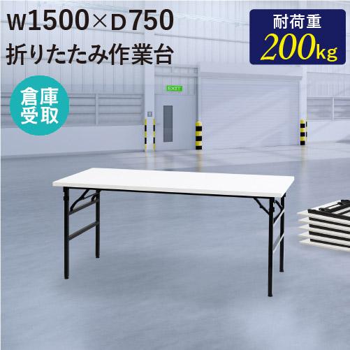 倉庫受取限定 作業台 折りたたみ ワークテーブル 幅1500×奥行750mm 作業テーブル 軽量 テーブル 工場 施設 スタッキング 完成品 作業机 共巻 OTS-1575-SO