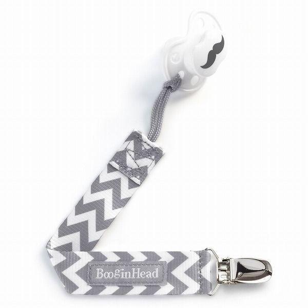 Boogin Head ブーギンヘッド おしゃぶりホルダー パーチー グリップ グレーホワイトシェブロン 1個