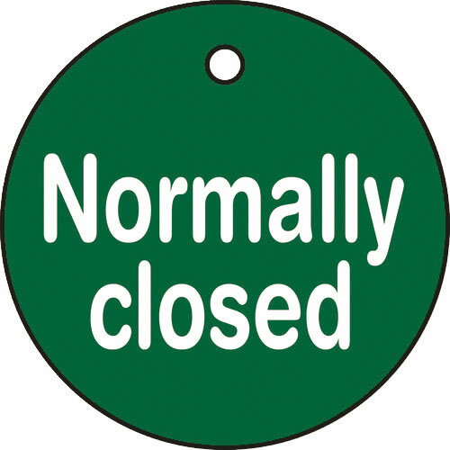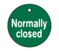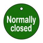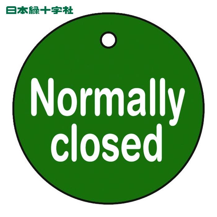 日本緑十字 バルブ表示板 バルブ開閉札 Normally closed(緑) 50mmΦ 両面表示 PET (1枚) 品番:151130