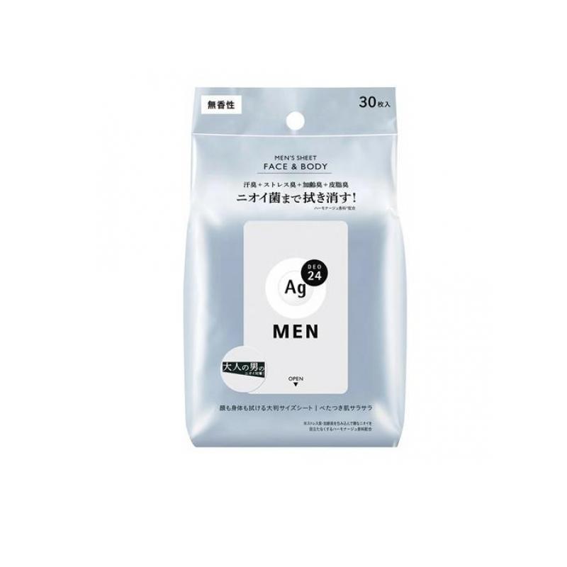 Ag DEO24 MEN エージーデオ24メン メンズシート フェイス&ボディ 無香性 30枚入 (1個)