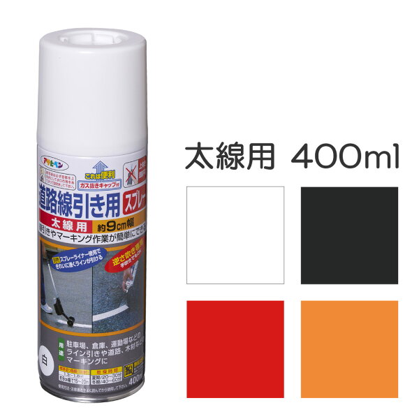 アサヒペン 道路線引き用スプレー 太線用 400ml 白 黄色 赤 黒 駐車場 道路 マーキング アサヒペン 簡単にきれいなラインや文字が書ける。逆さ吹き専用 別売スプレーライナー使用でも手吹きでもOK