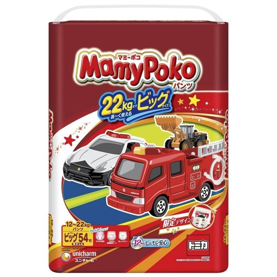 マミーポコパンツ ビッグ(12〜22kg) 54枚 【ユニ・チャーム パンツタイプ 限定トミカ・プラレールデザイン おむつ】【お一人様4点限り】
