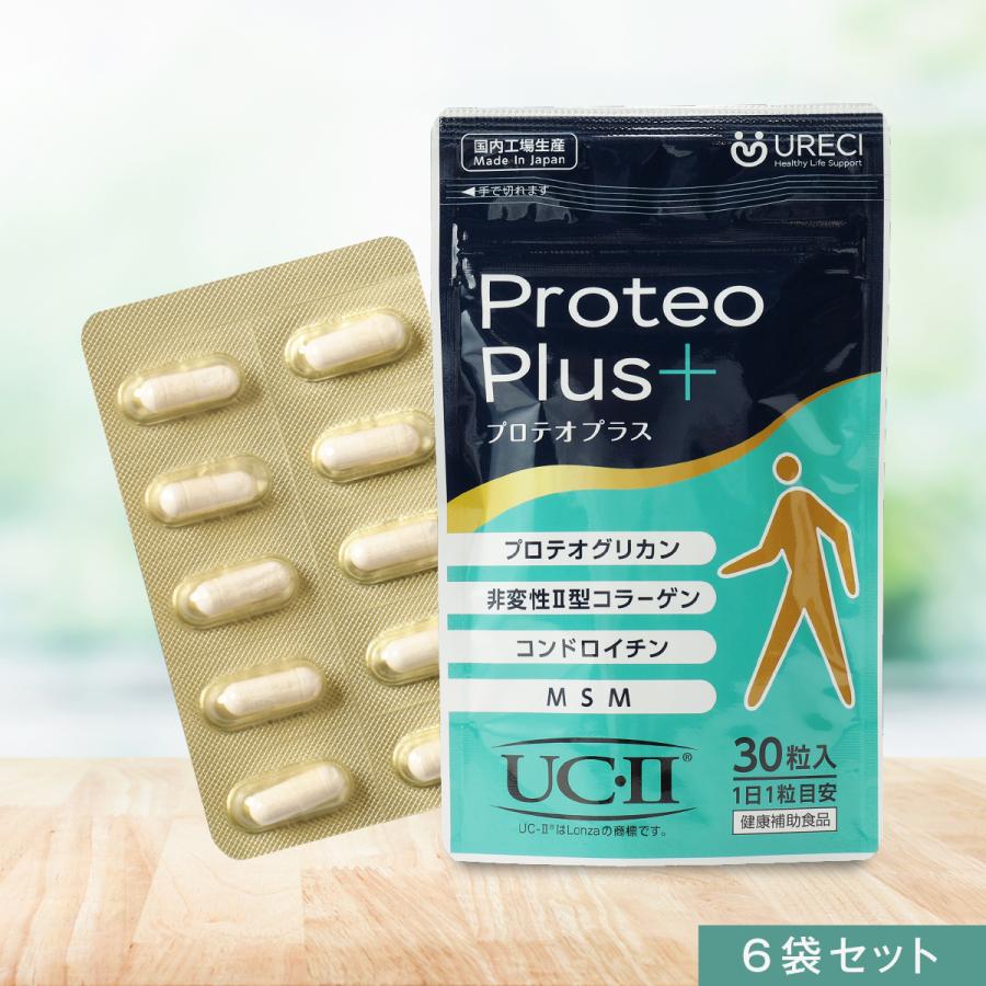 URECI プロテオプラス30粒入り(6袋セット) プロテオグリカン サプリメント 非変性 2型コラーゲン UC-II コンドロイチン MSM 日本製 約6ヶ月分