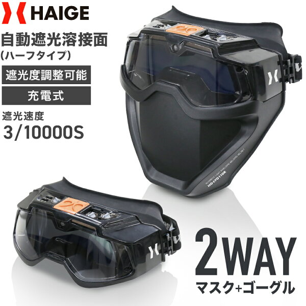 ★クーポン利用で4980円&P最大27倍★ハイガー 自動遮光溶接面 ソーラー充電対応 溶接面と溶接ゴーグルの2WAY仕様 LEDライト付き HG-LYG110R【1年保証】