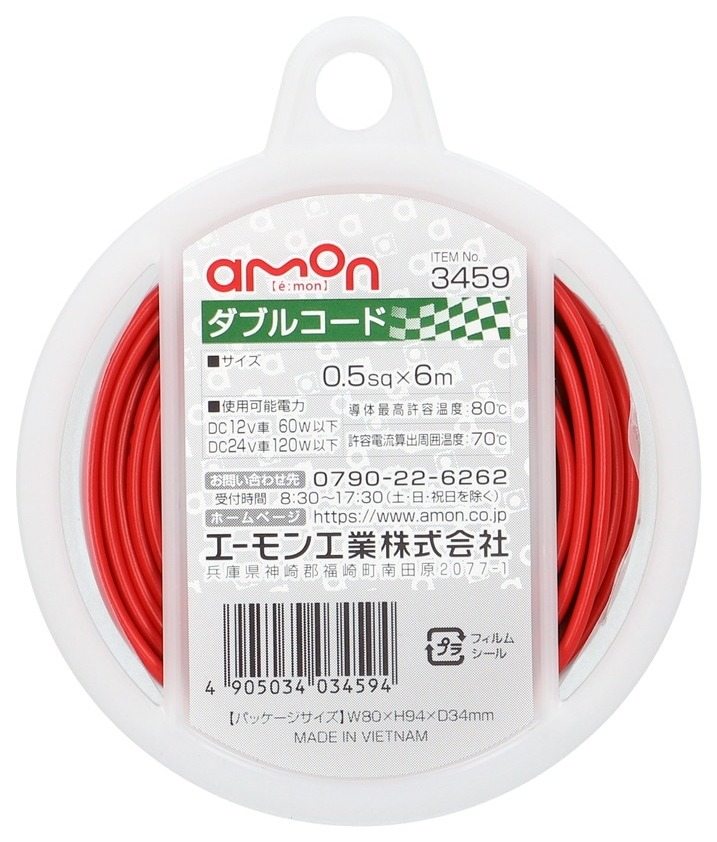 エーモン工業 3459 ダブルコード コードサイズ:0.50sq 長さ:6m 赤/黒 赤黒 3459