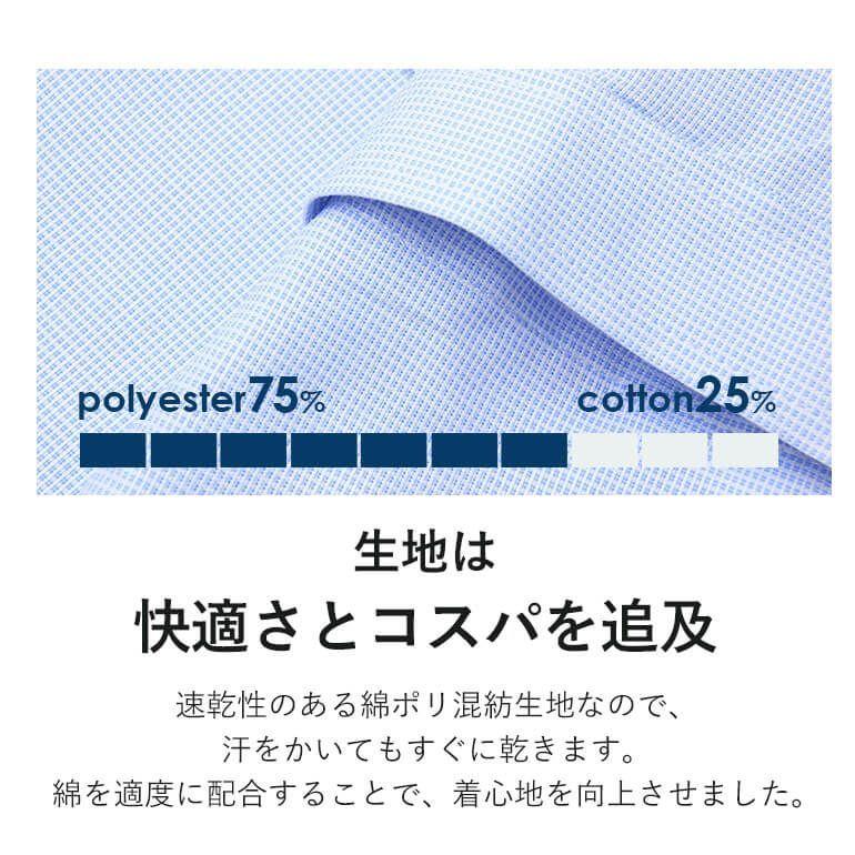 【型番】SHIRT-ZA3SET1【商品情報】・ポケット数:1 ・背タック ・スペアボタン付き ・形態安定(トップヒューズ加工)で簡単お手入れ【素材】綿25% ポリエステル75%(お手入れのしやすい、イージーケア性の高い生地)【付属品】-
