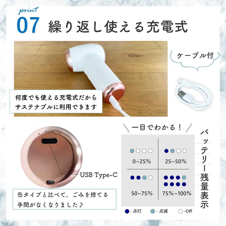 繰り返し使える充電式で、いつでも簡単に使用できます。