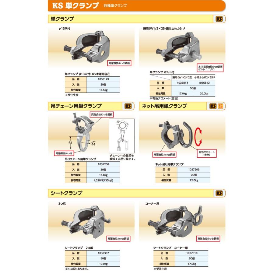■商品名:KS吊チェーン用単クランプ バラ売り■製品名:KS吊チェーン用単クランプ バラ売り■重量・サイズ:0.56kg■セット入数:1個■商品説明単管用のクランプです。
