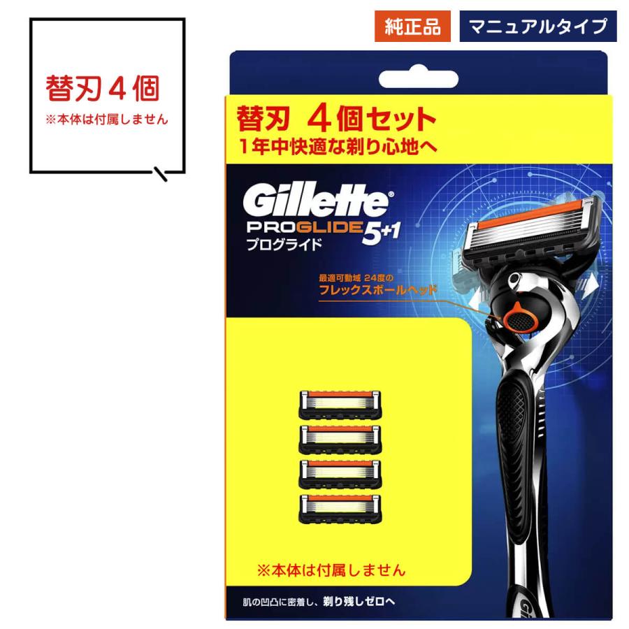 ジレット 替刃 4個 プログライド マニュアルタイプ 5枚刃 髭剃り ひげそり 純正 正規