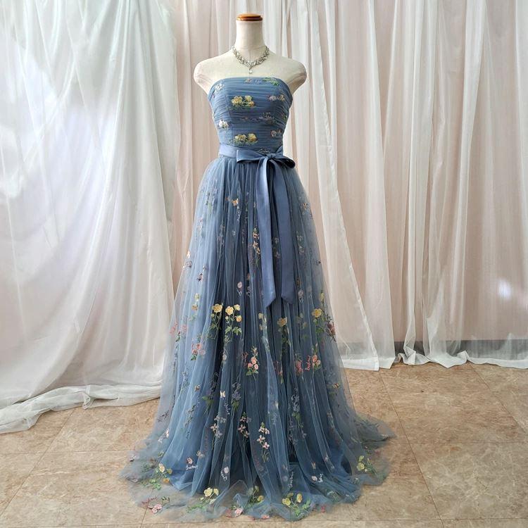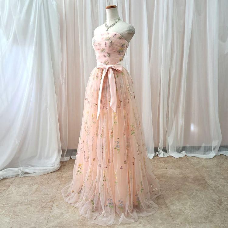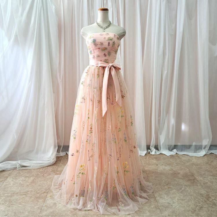 カラフルな小花の刺繍を散りばめた可愛らしく上品なカラードレス♪