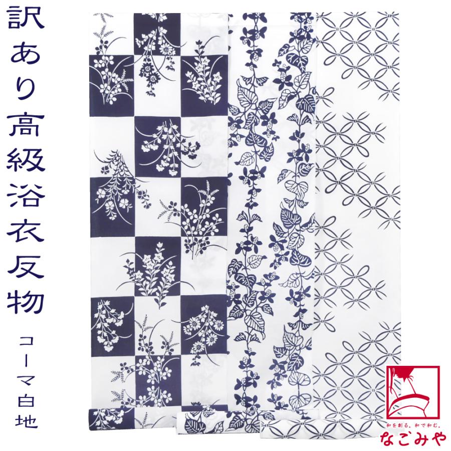 反物 浴衣地 日本製 訳あり 高級 ゆかた コーマ白地 12m 全3種 江戸注染染めブランド 美しいキモノ掲載常連 大人 レディース 女性