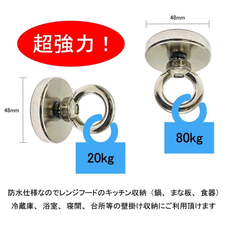 強力ネオジム磁石を使用した強力マグネット フックです。垂直方向80kg、水平方向20kgまで、物を「吊下げる」ということを極限追求した超強力 マグネットフック。