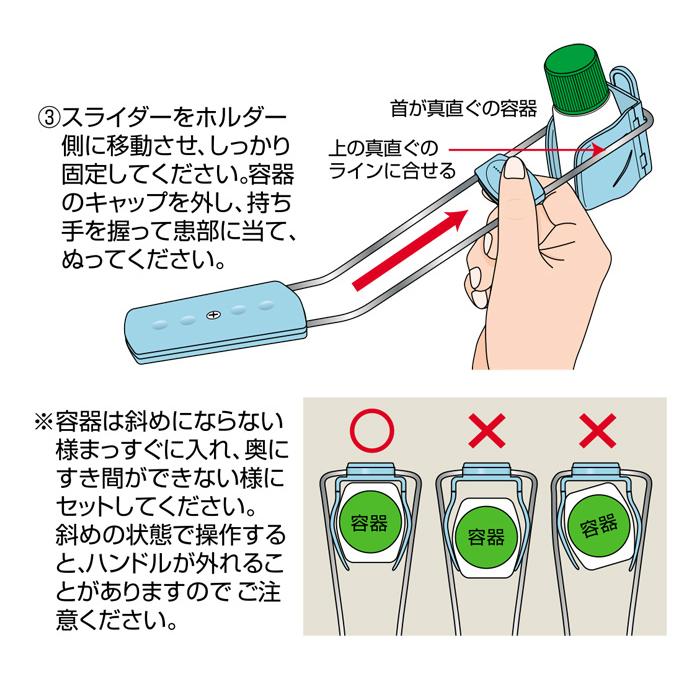 ぬり薬の容器の首が横型とストレート型のどちらでも対応できるすぐれものです。