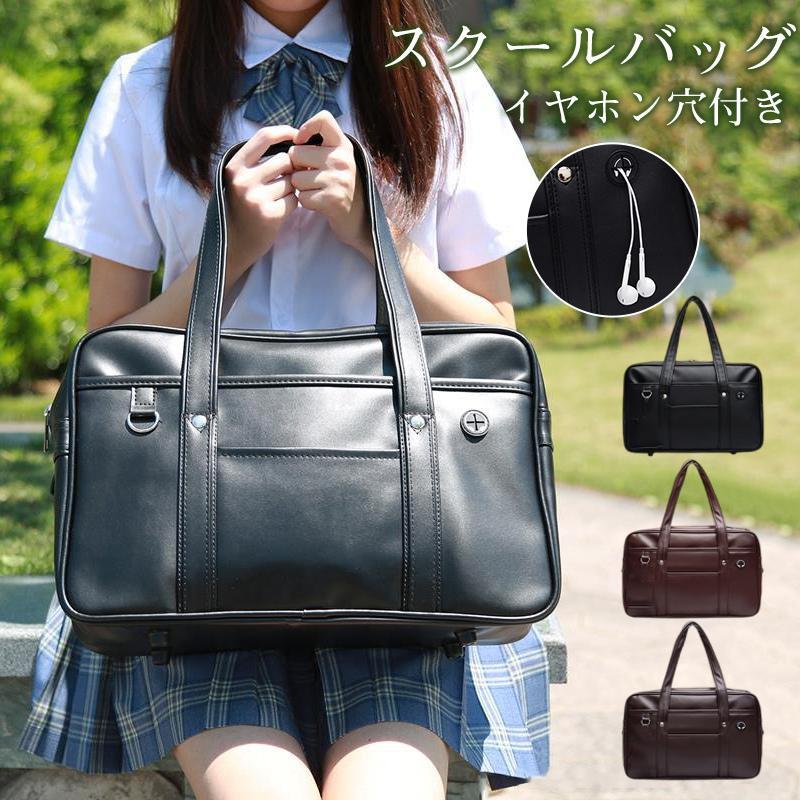 「品質保証」スクールバッグ 制服バッグ 肩掛け 学生鞄 イヤホン穴付き 中学生 高校生 合皮 通学 手提げ 男女兼用 娘 軽量 無地 大容量 トートバッグ 撥水加工