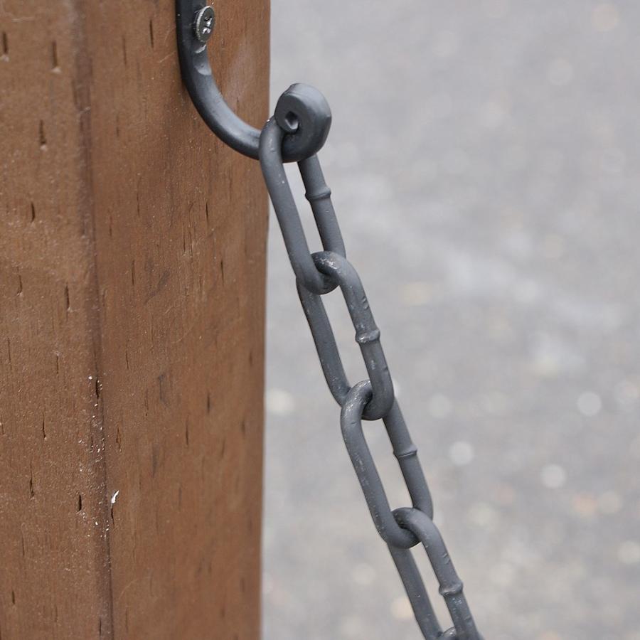 アイアンや樹脂、プラスチック製のクローズゲートは多いですが、この木製チェーンスタンドは庭雑貨ドットコムでしか買えないオリジナル品。