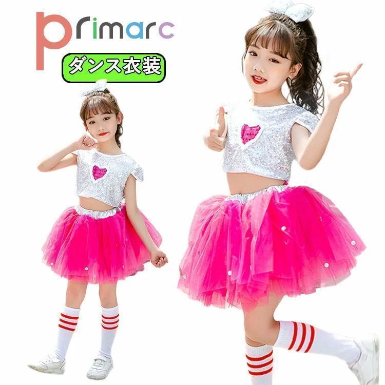 キッズ ダンス 衣装 チアダンス セットアップ へそ出し トップス スパンコール キッズ 女の子 キラキラ ピンク スカート パンツ チュールスカート トップス