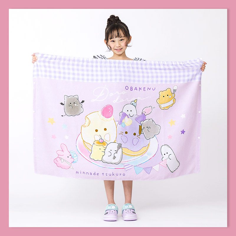 新作 圧縮パック配送 水着 スイムグッズ キッズ ベビー プールタオル お着替えタオル ラップタオル バスタオル 巻きタオル 80x120cm ガールズ 通園 通学 24夏 オバケーヌ[242951]<br>