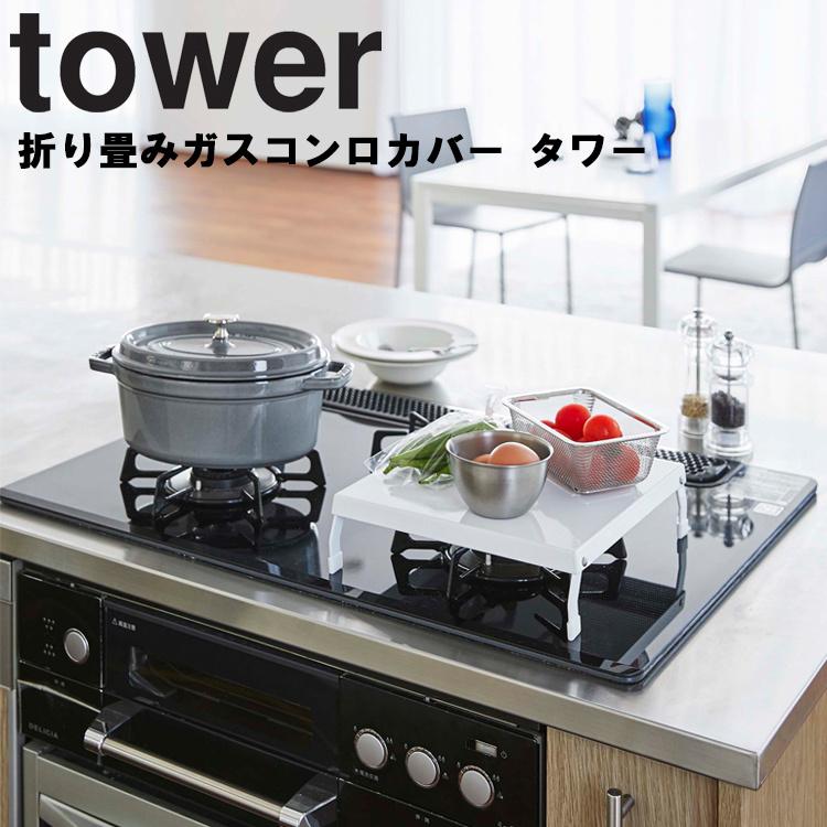特典付 山崎実業 折り畳みガスコンロカバー タワー ワイド tower 公式 コンロ上 作業台 キッチン 台所 隙間収納 白 黒 4922 4923
