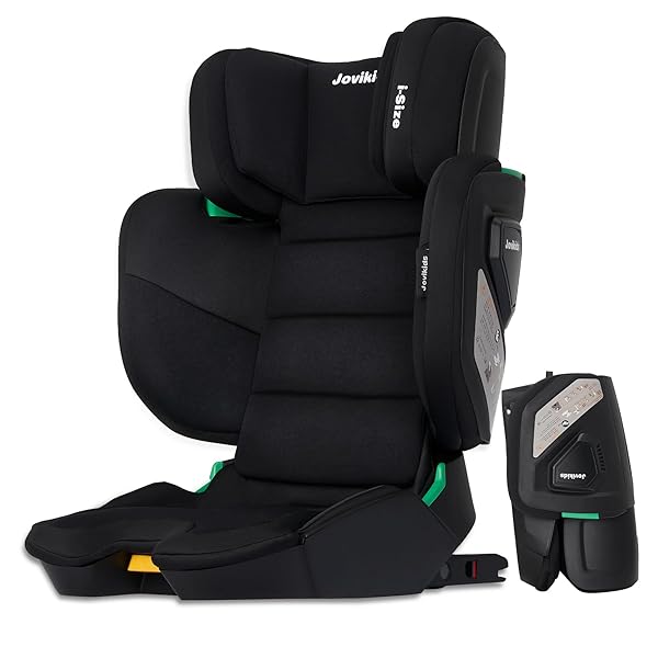 Jovikids 折りたたみのジュニアシート ISOFIX、i-Size R129適合 3歳から チャイルドシート、背もたれの幅とヘッドレストを調節、100〜150cm(3〜12歳くらい)ブースターシート (ブラック)