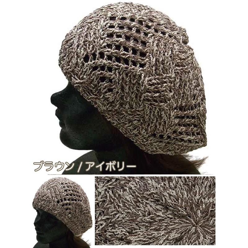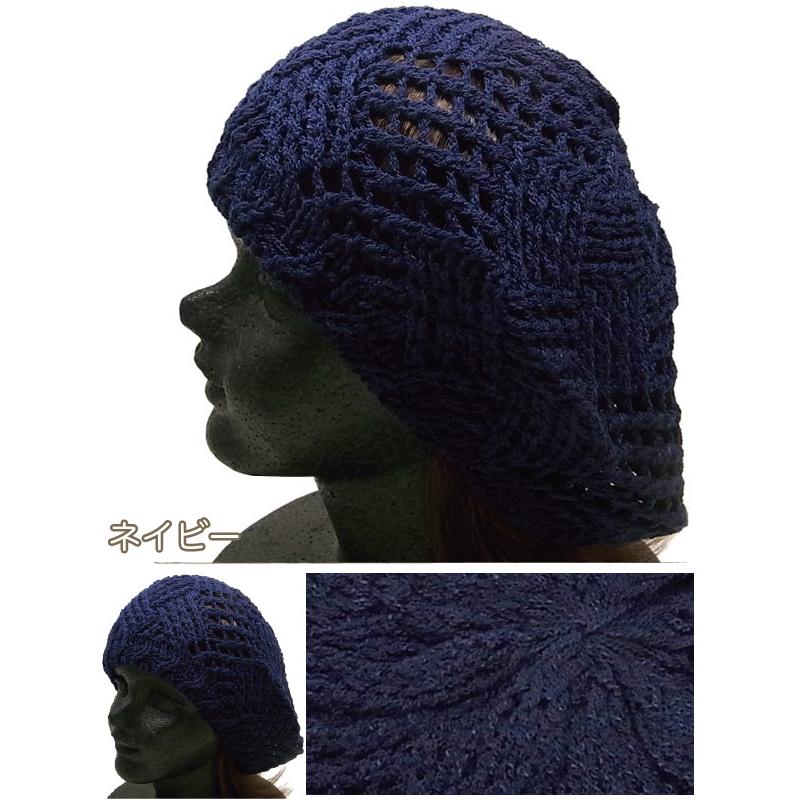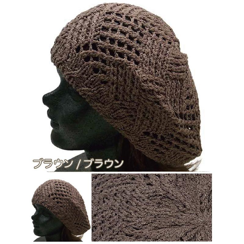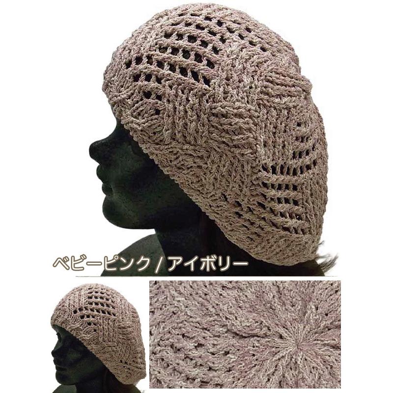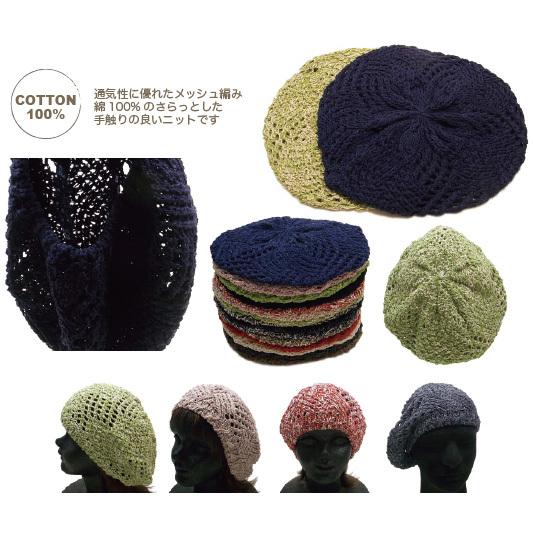 ・さらっと肌触りのいいコットンニットです。・メッシュ編み部分があるデザインを取り入れたお洒落で通気性のいいベレーです。・素材:綿 100%・フリーサイズ・帽子の直径(平置き採寸):約27cm