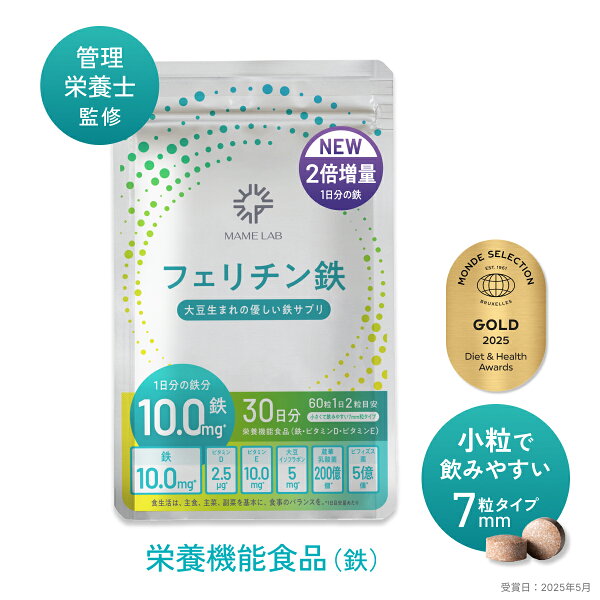 P10倍【2025モンドセレクション金賞】フェリチン鉄 60粒 1か月分 鉄分 サプリメント 送料無料 まめラボ 鉄分 サプリメ…