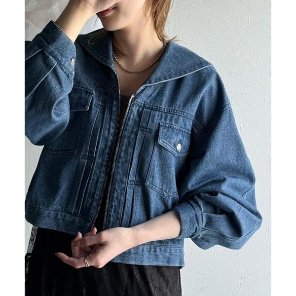 商品名:1枚で旬顔コーデ♪綿100%セーラーカラージップアップデニムジャケット(ショート丈)