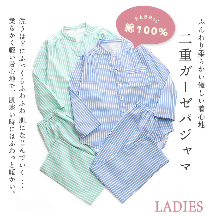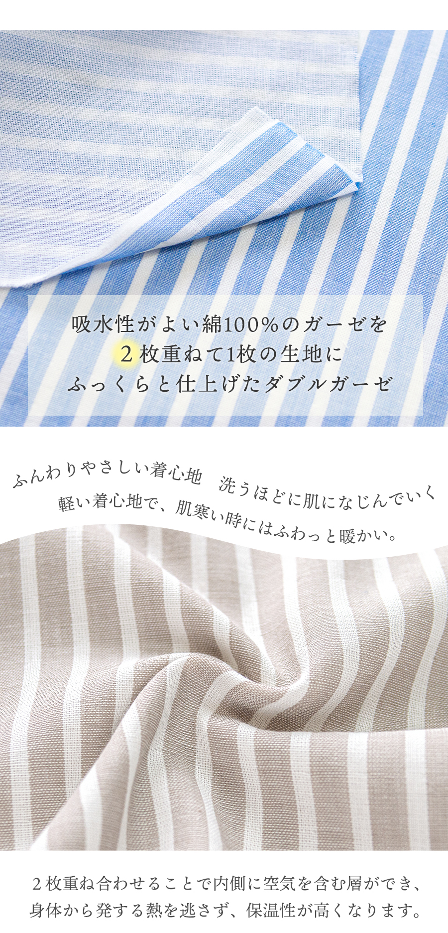 吸湿性・吸水性の良いガーゼを二重にして作ったパジャマだから、