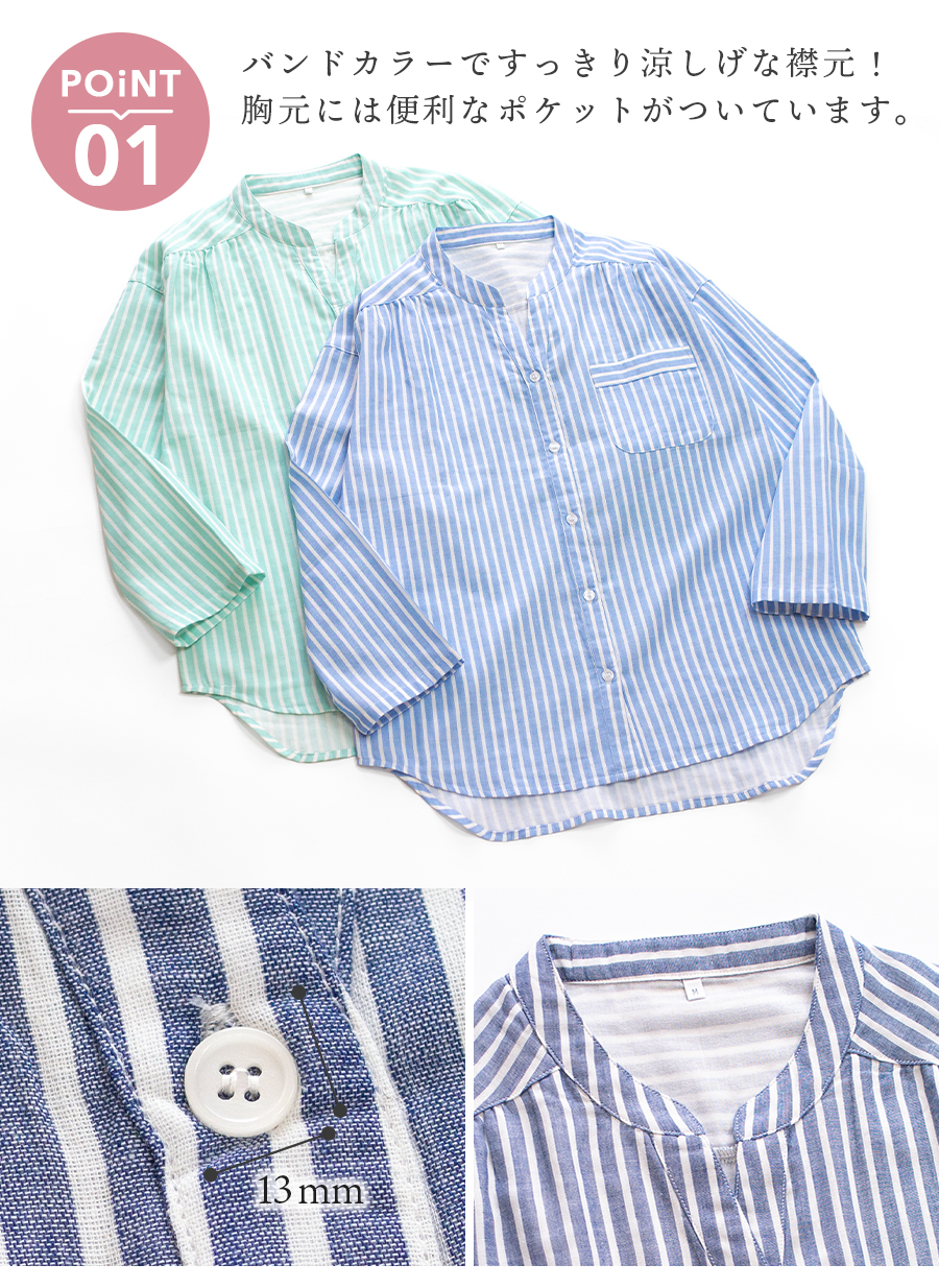 ■トップス仕様:長袖/バンドカラー/前開き/胸ポケット