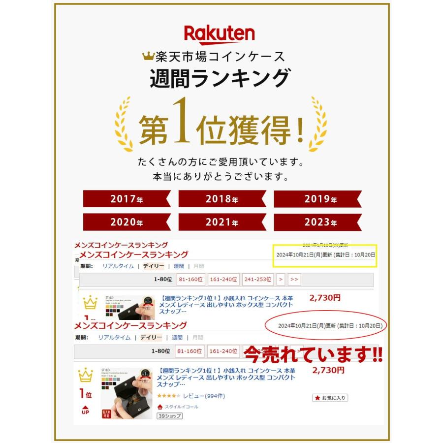 本コインケースの素材は天然皮革・牛革を使用。丈夫で使い込むほどに手に馴染み、味わい深くなります。【汚れが目立ちにくい角シボ加工】革の表面はキズや汚れが目立ちにくくなる角シボ加工。キレイな状態で長年ご愛用頂けます。