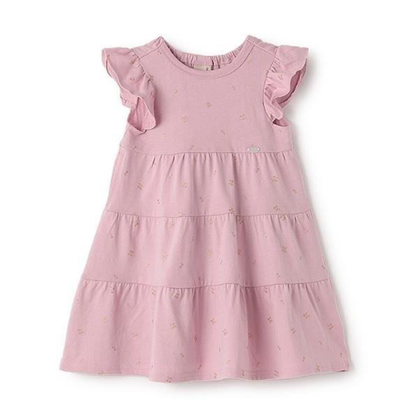 キーワード:ワンピース キッズ 子供服 女の子 ドット プリーツ ミモレ丈 半袖