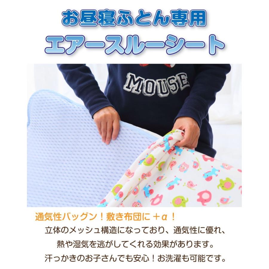 【サイズ】(約)69×118cm【素材】表・裏:ポリエステル60%、ナイロン40%【お手入れ方法】洗濯ネットのご使用で丸洗いOK、詳しくは製品表示をご確認の上お取り扱いください。【検索ワード】お昼寝ふとん用 エアースルーシート お昼寝布団 ひんやり 敷きパッド 子供用 汗パッド キッズ 汗吸収パッド さらさら 敷きパッド 保育園 パッド