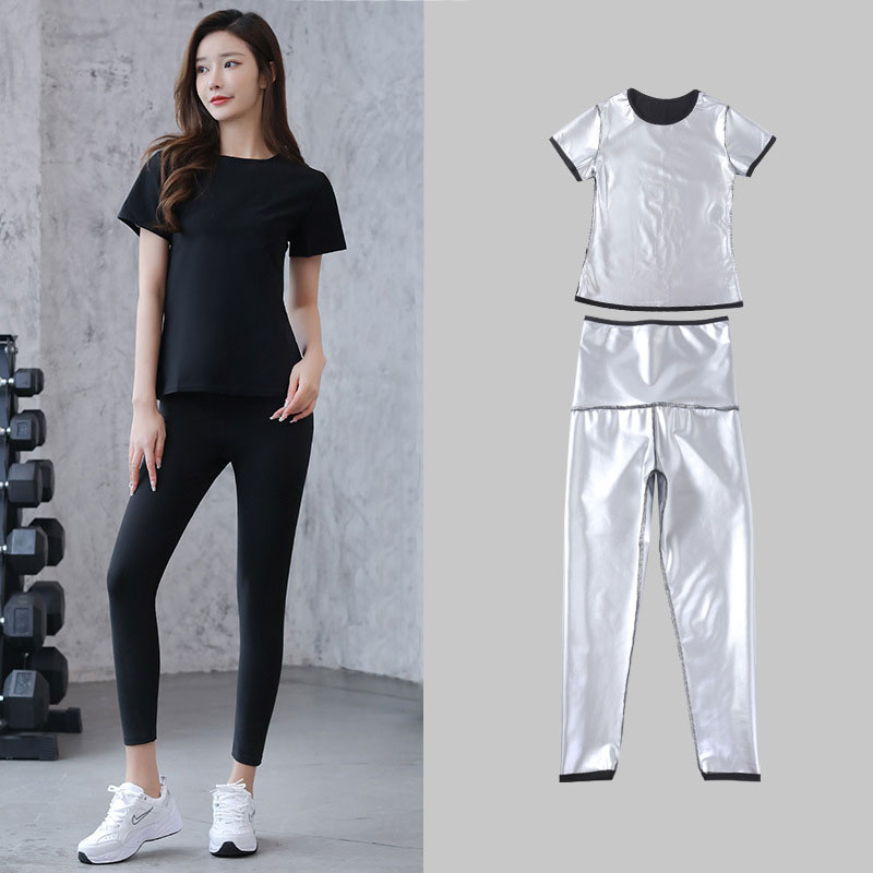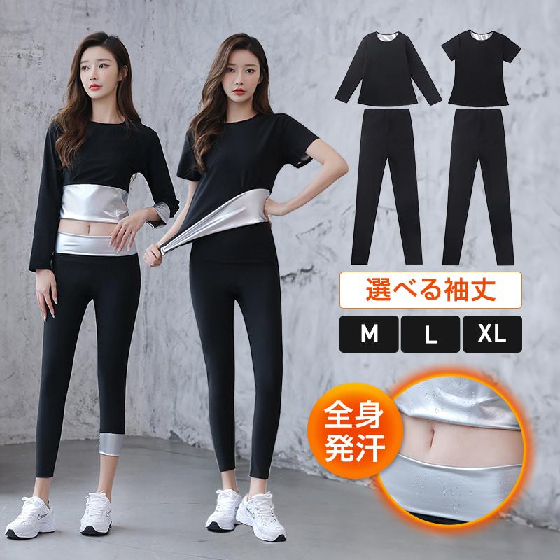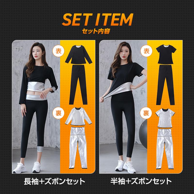 商品名:サウナスーツ レディース ウェア メンズ 上下 セット トレーニング 運動 パンツ おしゃれ インナー 上着 半袖 洗濯可能 発汗 シンプル