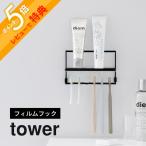 山崎実業 公式 タワー フィルムフック歯ブラシ&チューブホルダー tower 歯ブラシホルダー 替えブラシ 歯磨き粉 6本収納 10324 10325