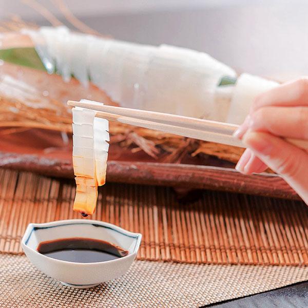 ■コメント: 一本釣りした呼子産の剣先イカの姿造りを、魚本来の「旨味・香り・みずみずしさ」を保てる最新のCAS凍結で瞬間凍結しご家庭にお届けします。胴体には甘みがあり、エンペラはコリコリ食感、軟骨にはイカ味噌たっぷり、足はコリコリの甘みと、目と口以外は全部丸ごと食べられます。お刺身のあとは天ぷらにしたり、炙り焼きやバター焼き、煮付もおすすめです。
