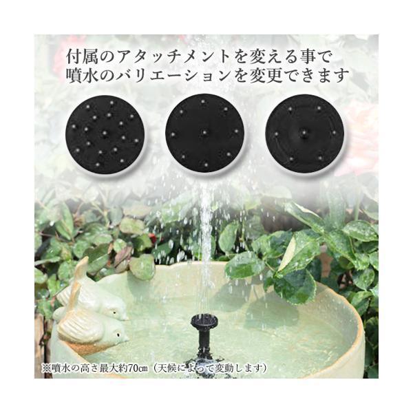 【商品説明】ガーデン用、太陽光発電のソーラーミニ噴水セットアタッチメントが付属しており、変更する事で噴水のバリエーションを変更できます。ソーラーパネル式なので、電気代の心配もありません。ソーラー ミニ 噴水 セット ガーデン用 ソーラーパネル 太陽光 ソーラーポンプ 噴水ポンプ 庭 池