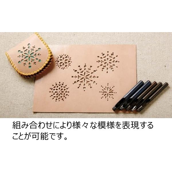 組み合わせで美しい模様を表現できるほか、切り抜いた革を接着して、