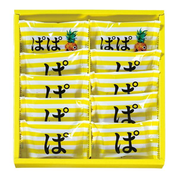 沖縄で愛情込めて育てたこだわりのパイナップルを使用した、パイナップルの風味豊かなしっとりフィナンシェです。- 内容量:10個入- 箱サイズ:約22.5×20.5×3.5cm- アレルギー特定原材料(※1):乳 小麦 卵 アーモンド 大豆 <こちらの商品はメーカー直送品です>(※1)特定原材料および特定原材料に準ずるもの28品目