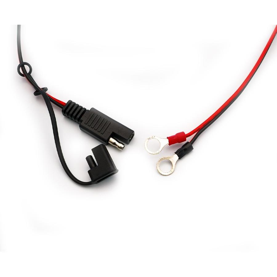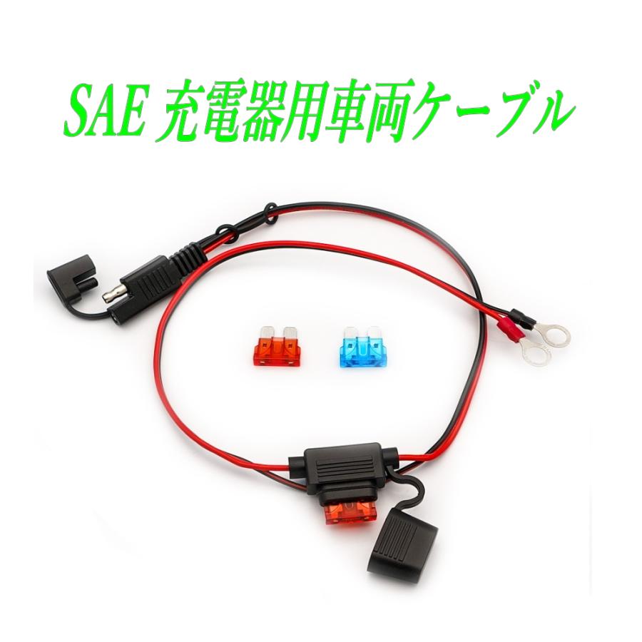 配送はヤマト運輸「ネコポス」ポスト投函です。時間指定は出来ません。日時指定は、宅急便、宅急便コンパクトをご利用ください。車載バッテリーと充電器を接続できます。SAE端子仕様・全長:約60cm・丸形端子の内径:7.5mm・10Aヒューズ内臓 (10A 15A 付属) 在庫が有れば、ご希望のヒューズに変更します。