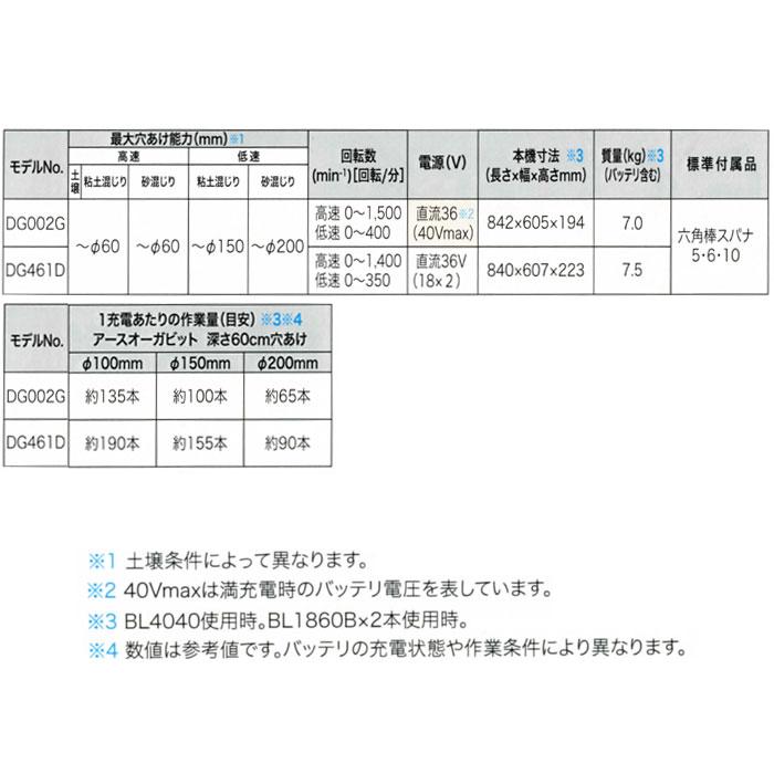 マキタ 充電式アースオーガ DG461DZ 18V+18V=36V 本体のみ(バッテリ・充電器・ビット別売) オーガビット直付け仕様