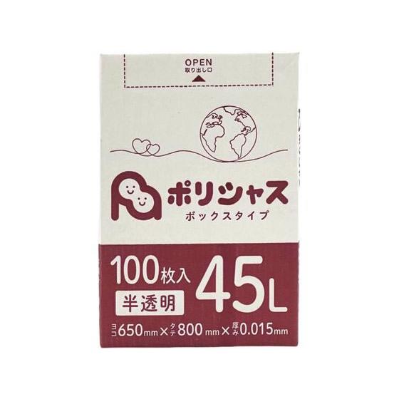 【ポイント3倍】ゴミ袋 45L 半透明 100枚 箱タイプ 0.015mm厚 8小箱入り (合計 800枚) 1小箱あたり660円 1枚6.6円 送料無料 HDPE素材 ポリ袋 ビニール袋 BOX-530 ポリライフ ポリシャス アンビシャス