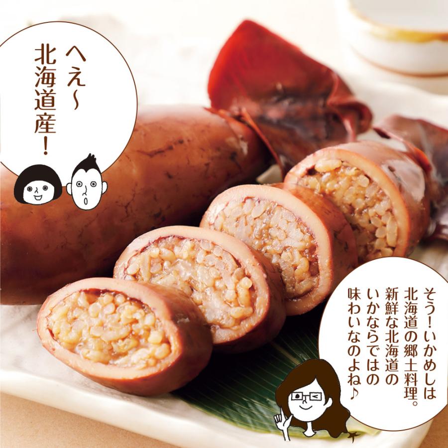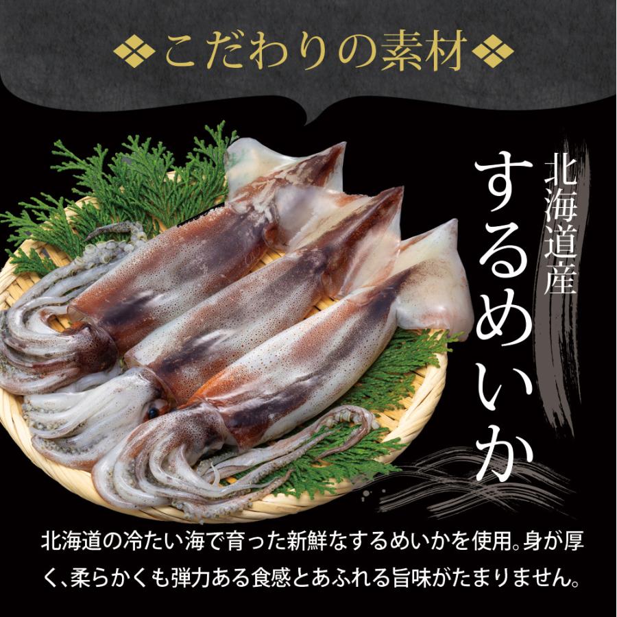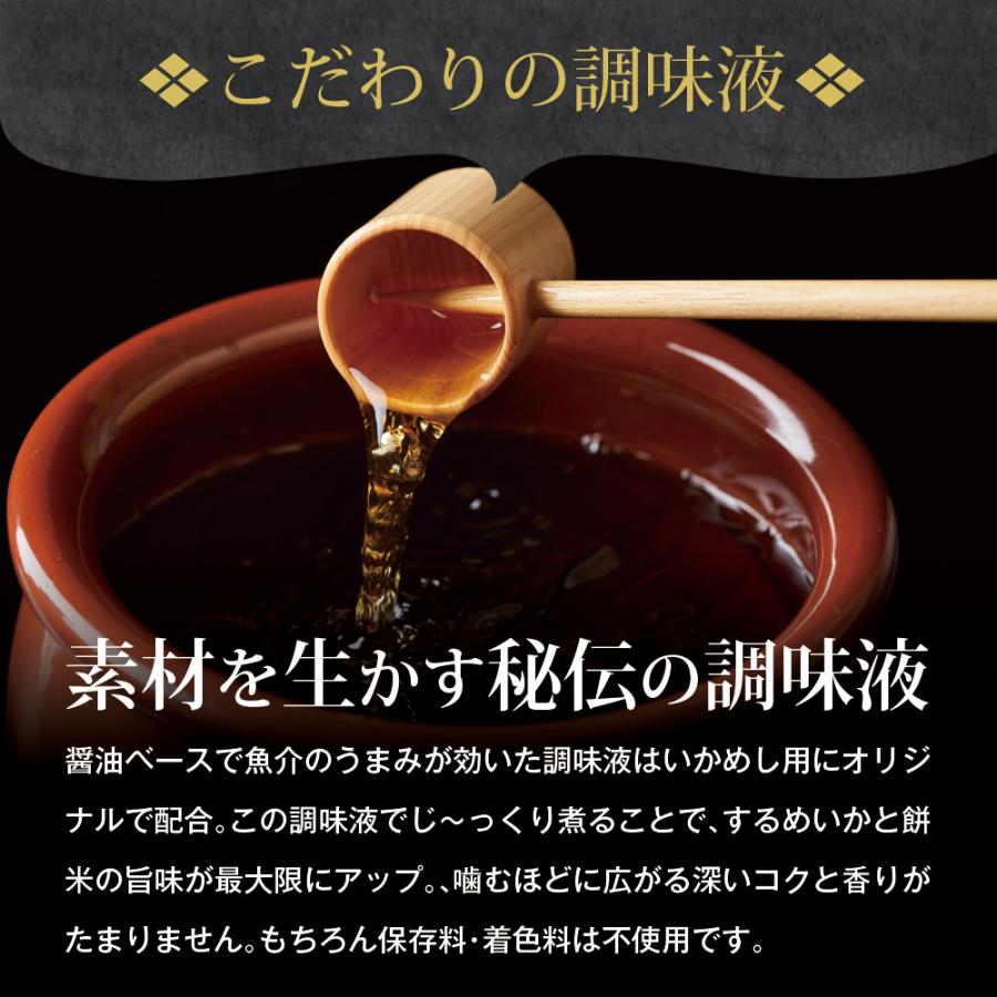 ボイルいか(するめいか(北海道産))、うるち米、もち米、醤油、砂糖、米発酵調味料、オリゴ糖、鰹節エキス、食塩、昆布だし、酵母エキス、ほたてエキス、椎茸エキス、(一部に小麦・いか・大豆を含む)