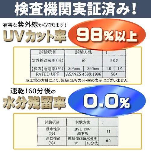 生地は通気性、速乾性に優れ有害紫外線を99%以上カット。