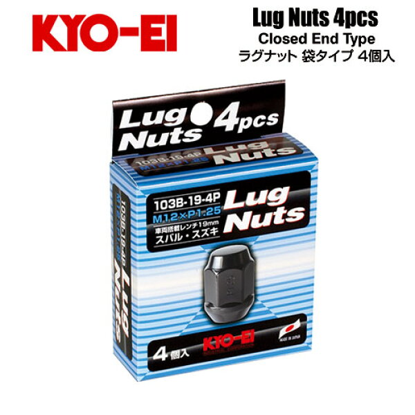協永産業 KYO-EI ラグナット <br>M12×P1.25 ブラック 全長31mm 二面幅19HEX テーパー60° (4個) 袋ナット