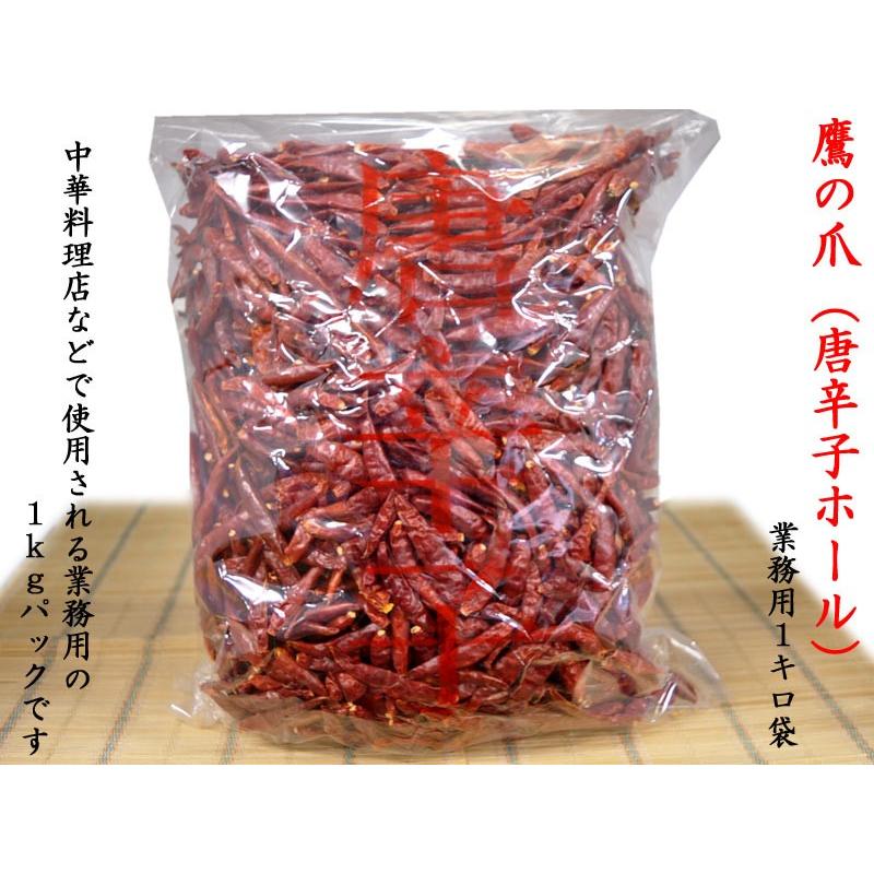 辣椒(鷹の爪)はその形が鷹の爪に似ているためこう呼ばれる中国産の唐辛子です。中華料理では鶏肉の唐辛子炒めなどに使用されます。最近ではカイエンペッパーなどと呼ばれたりします。流行りの火鍋や激辛料理には欠かせません。【商品詳細】・商品名 鷹の爪・原材料 唐辛子・内容量 1kg・形態 ホール・原産国 中国※唐辛子は湿気の多い場所などに放置するとカビます。開封後は容器を移し変え、高温多湿を避けて、冷蔵庫などで保存して下さい※パッケージは画像と違う場合がございます