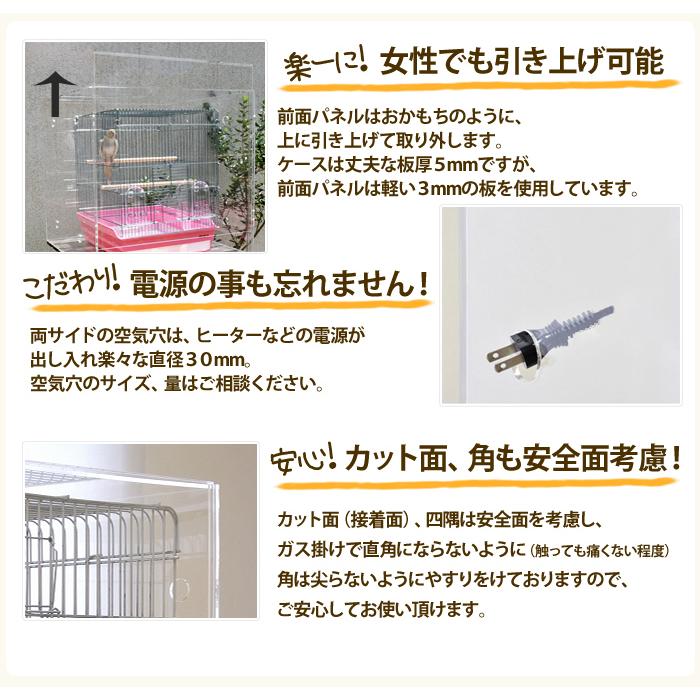 透明度の高い国内メーカーアクリル板使用だから愛鳥とのコミュニケーションを妨げません。