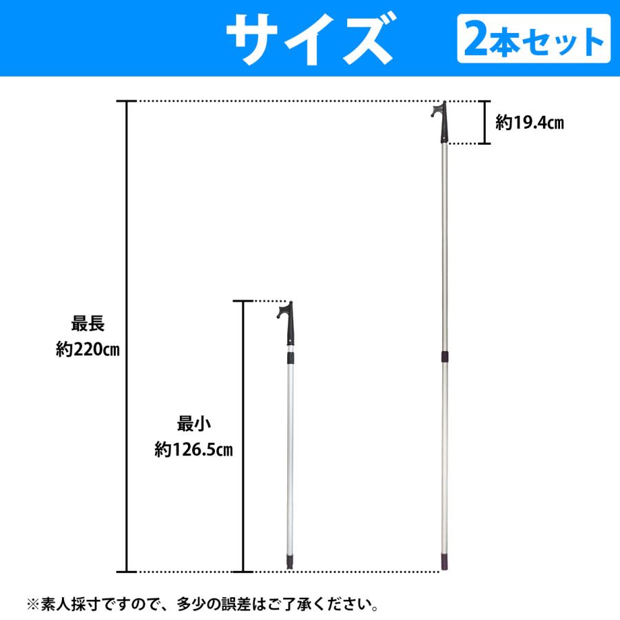 【無段階】伸縮タイプのボートフックです。シャフト部分をねじることで自由に長さ調節が可能です。長さは最小1265mmから最大2200mmまで。途中での固定も可能です。【収納時】使わないときは最小で1m強、収納場所にも困りません。【軽量】軽くて耐久性のあるアルミ製です!【材質】シャフト部:アルミ合金グリップ、フック:高強度プラスチック