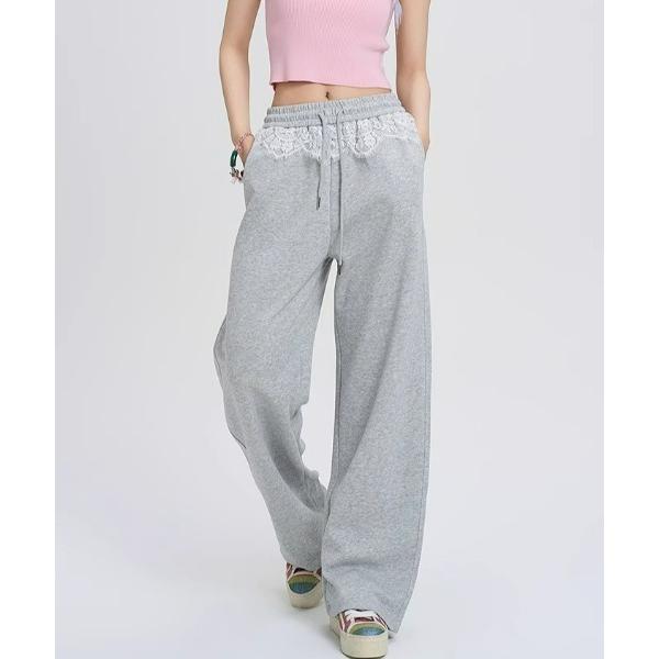 スウェットパンツ ジャージ レースレイヤードルーズスウェットパンツ レディース