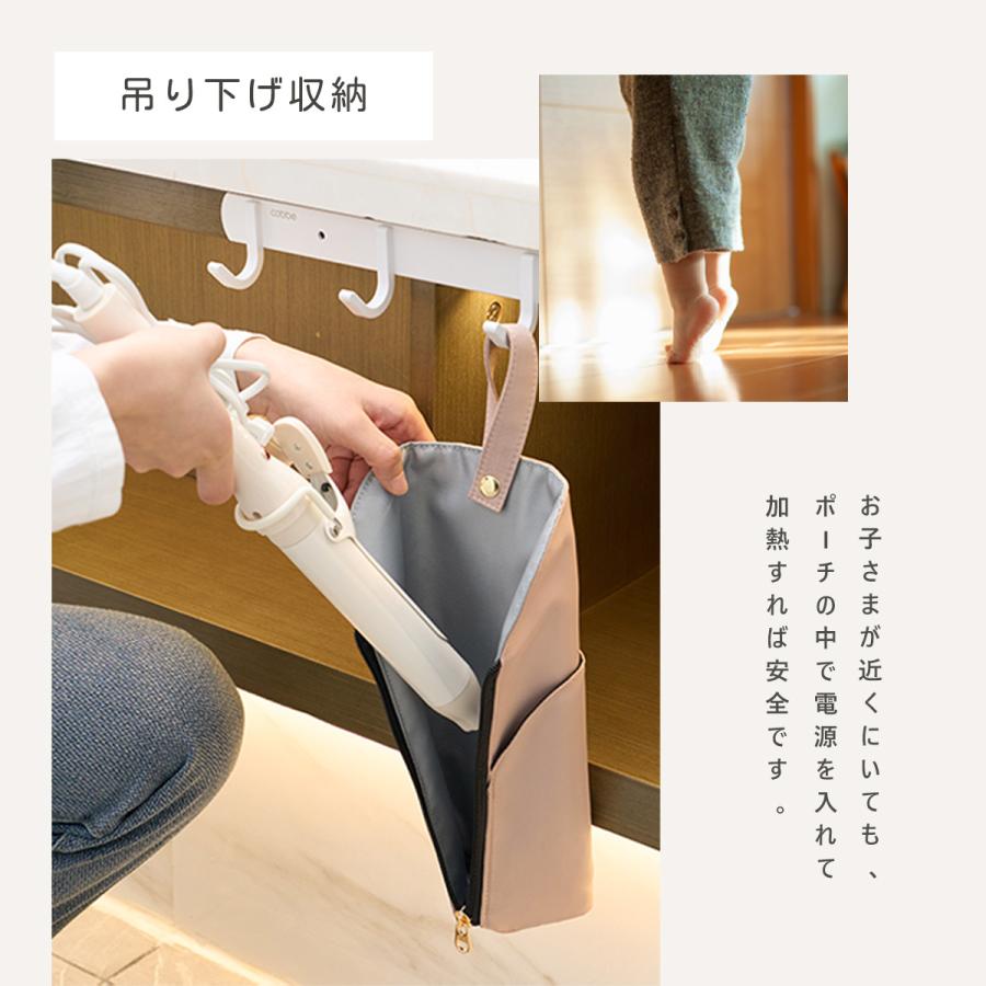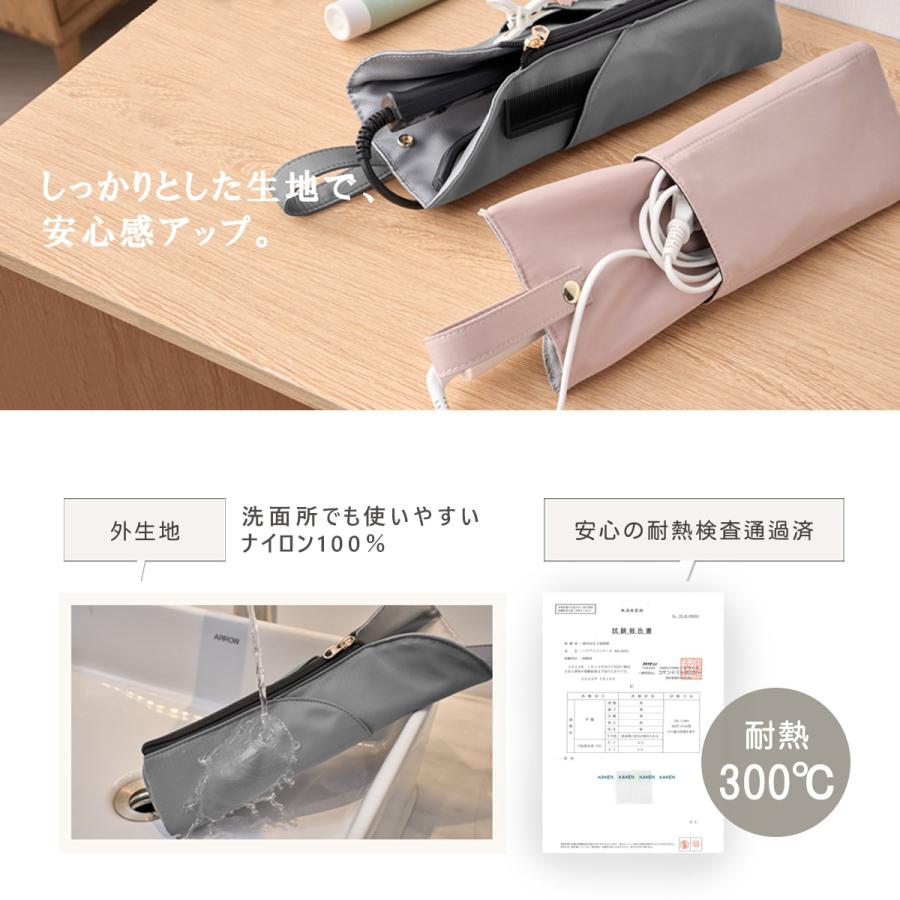 TOKAIZ公式! ヘアアイロンケース 耐熱 旅行 ポーチ カバー 吊り下げ ミニ アイロン収納 熱いまま 収納 持ち運び おしゃれ ヘアアイロンポーチ ピンク マチ付き トラベル ヘアアイロンホルダー かわいい コテ入れ 電源コード用ポケット付き 美容家電